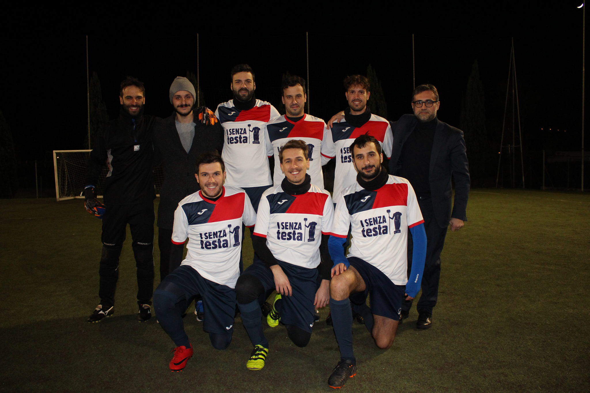 Parte meglio la New Team che, al 2’, colpisce una clamorosa traversa con un gran tiro di Cela e passa in vantaggio al 7’ con Breccia che pesca l’incursione di Merra che batte di esterno da due passi il portiere Balestrieri. La New Team è ancora pericolosa con una punizione di Poeta respinta da Balestrieri ma al 9’ i Senza Testa pareggiano con Guerrini, lanciato a rete dopo una palla persa, che non ha problemi a battere il portiere Ciccone in uscita. Il gol dà la carica agli osimani che giocano bene, determinati e ribaltano il punteggio con Guerrini che devia in area un cross di Marinelli. Al 20’ la New Team ha l’occasione del pareggio con Moriconi che spreca un cross al bacio di Cela con un piatto sinistro che finisce alle stelle. Al 23’ Brandoni perde una palla sanguinosa al limite dell’area, Guerrini ringrazia e segna il 3-1. La New Team cerca di accorciare con un destro di Ragnini, ma i Senza Testa sfiorano il 4-1 con un destro da fuori di Marinelli che fa la barba al palo. Il finale di tempo è della New Team, ma Balestrieri respinge la girata di Breccia e consente agli osimani di andare al riposo con il doppio vantaggio.